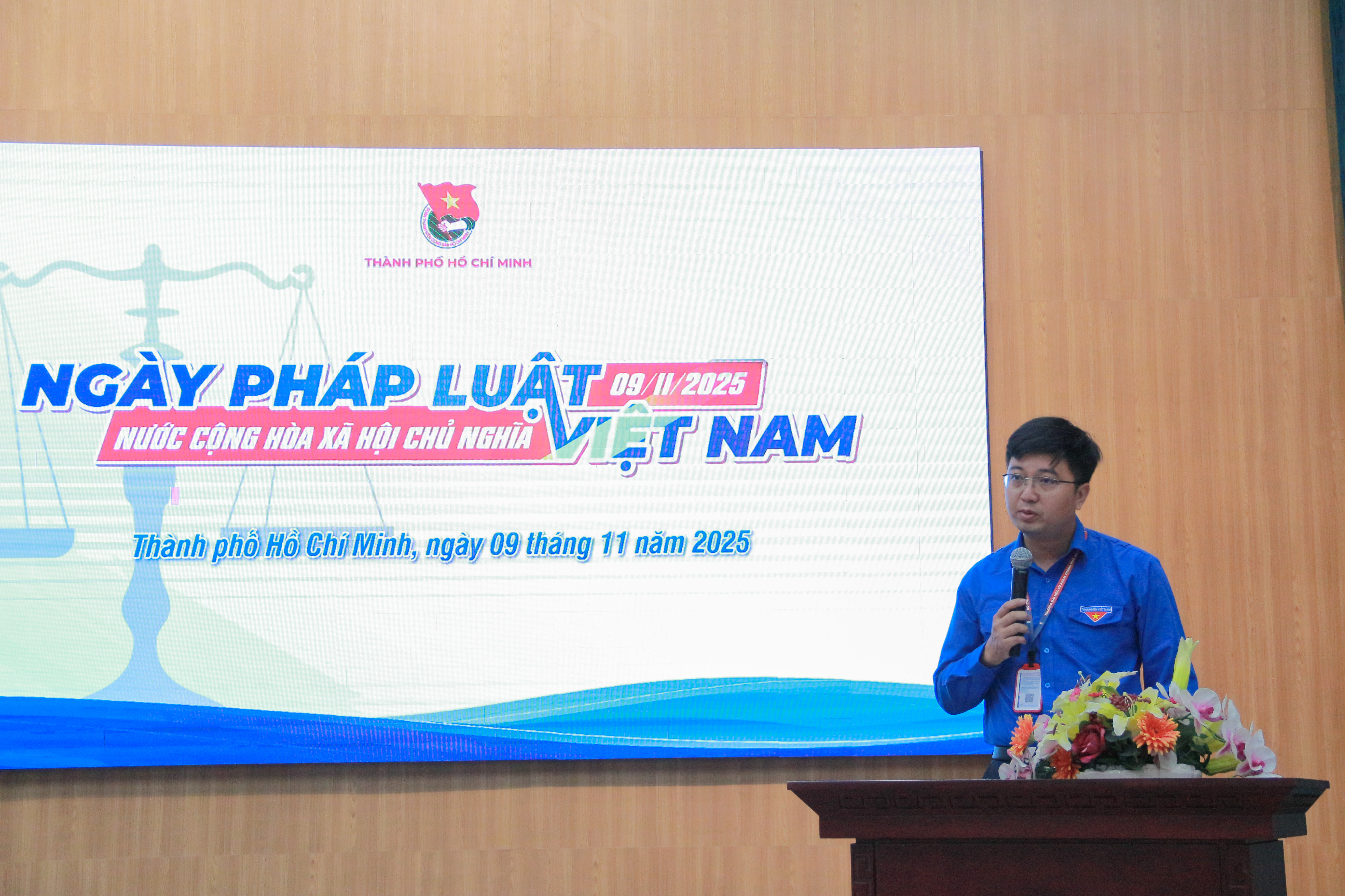 "Thay mặt Ban Tổ chức, tôi kêu gọi mỗi đoàn viên, thanh niên tham gia Ngày hội hôm nay hãy mang về không chỉ là kiến thức, mà còn là một cam kết hành động: Hành động tuân thủ pháp luật, hành động lan tỏa tinh thần thượng tôn pháp luật. Mỗi thanh niên, mỗi đoàn viên hãy là một tấm gương sáng về ý thức pháp luật" - Đồng chí Nguyễn Vũ Hoài Ân - UVBCH Thành Đoàn, Bí thư Đoàn Trường ĐH Sư phạm TPHCM, Trưởng Ban Tổ chức hoạt động phát biểu nhấn mạnh và kêu gọi đoàn viên, thanh niên cùng nêu cao tinh thần của Ngày Pháp luật.