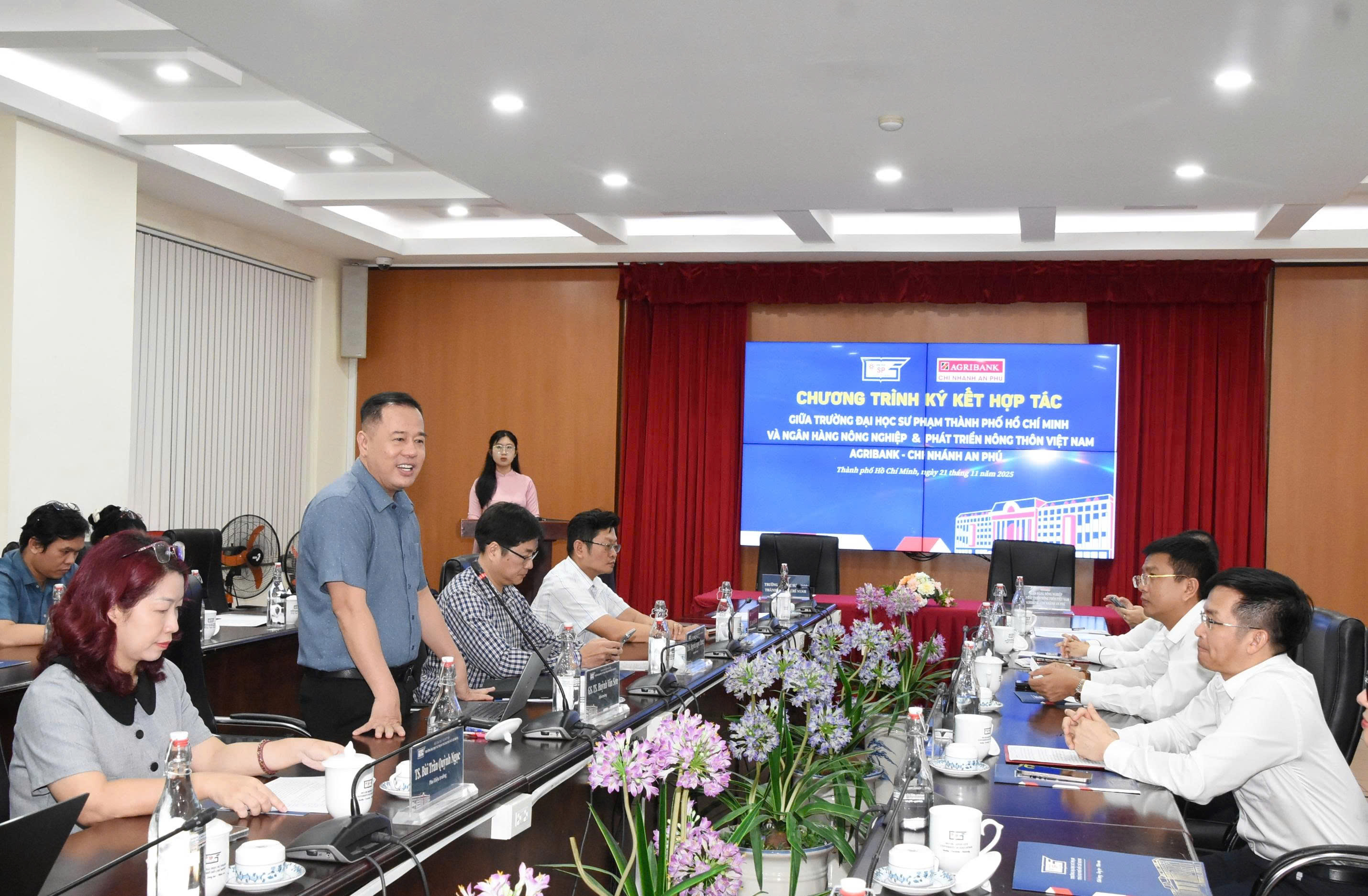 Chiều ngày 21/11/2025, tại Phòng C.207 - Cơ sở 280 An Dương Vương, Trường Đại học Sư phạm Thành phố Hồ Chí Minh đã long trọng tổ chức Lễ ký kết thỏa thuận hợp tác với Ngân hàng Nông nghiệp và Phát triển Nông thôn Việt Nam (Agribank) - Chi nhánh An Phú. Sự kiện đánh dấu bước phát triển mới, tiếp nối những thành quả hợp tác tốt đẹp giữa hai đơn vị trong giai đoạn 2023 - 2025.